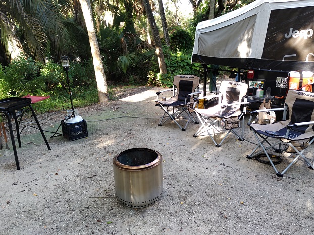 Camp Chairs, Solo Stove Bonfire, Camp Chef Stove and Barbq, Propane tank and latern.